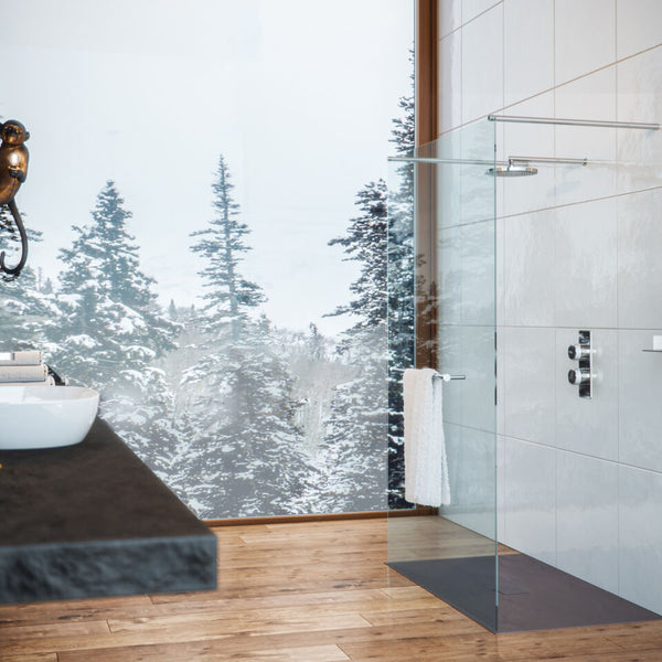 A couple of simple ideas would be to match the style of the shower enclosure to the overall décor of your bathroom. For example, if you covet the industrial look for your space, then introduce pops of black in your hardware and shower screen.