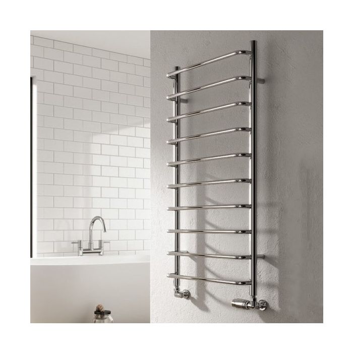 The Reina Aliano Designer Radiator in Chrome boasts a contemporary design that adds both style and warmth to any room, making it a standout feature in modern interior décor.